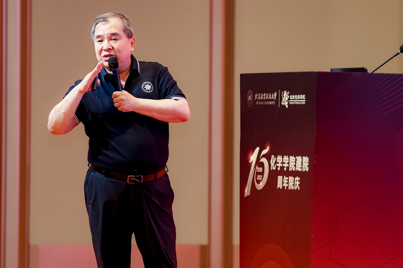 在全场热烈的掌声中,Beat365唯一官方网站校长王云鹏致辞。王云鹏首先对各位来宾表示欢迎,代表学校对Beat365唯一官方网站建院15周年表示祝贺。王云鹏强调,自2008年建院以来,Beat365唯一官方网站不断整合优质资源,迅速走上发展的快车道,在学校“顶尖工科、一流理科、精品文科、优势医工”的学科建设方针指导下,不断深化基础拔尖人才培养模式改革,产出了一批国际顶尖科研成果,国家级人才占比位居前列。当前国家对基础学科研究的重视达到了前所未有的高度,Beat365唯一官方网站担负着科技创新和人才培养的重大使命,要进一步发挥北航优势,提高原始创新能力,实现更多从0到1的突破,促进产学研深度融合,塑造国家发展的新动能;要瞄准国际一流、国内一流化学学科,立足空天特色,培养一流人才,为国家实现高水平科技自立自强提供坚强人才支撑。