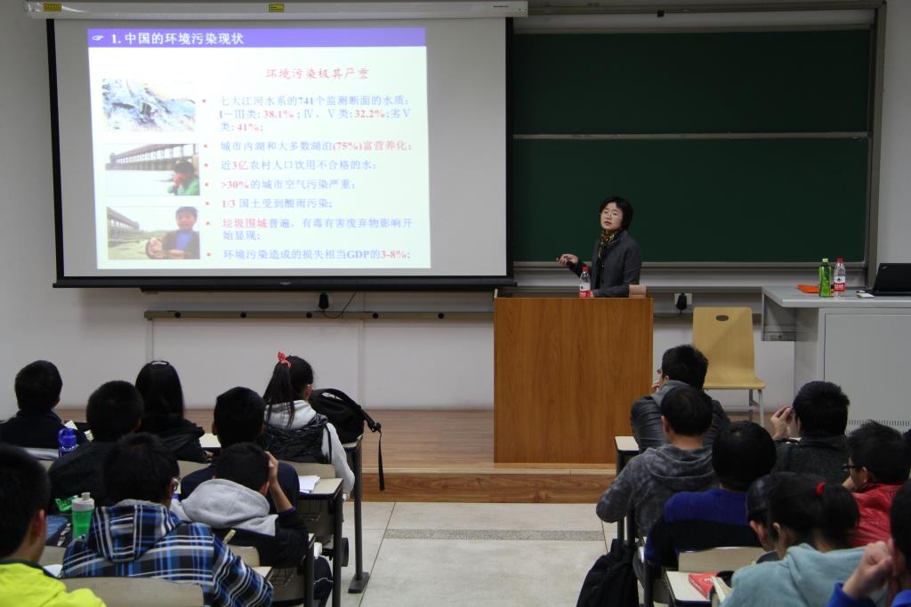 范老师以中国的环境污染现状为切入点,拉开了此次讲座的序幕。范老师用几个典型的严重污染的中国城市作为典型,为同学们清晰地讲述了目前国内严峻的污染现状。接着,她以自身经历为线索,向同学们阐述了环境专业所面临的机遇与挑战,并对环境专业的同学予以极大地鼓励。然后,范老师从学习、生活、发展等三方面入手,对同学们寄予了无限厚望,希望同学们可以从“成人”发展为“人才”。最后,范老师介绍了她现在的主要的研究方向,即人工纳米材料的生态毒性效应方面的研究工作,并鼓励同学们参与到她的研究中去。