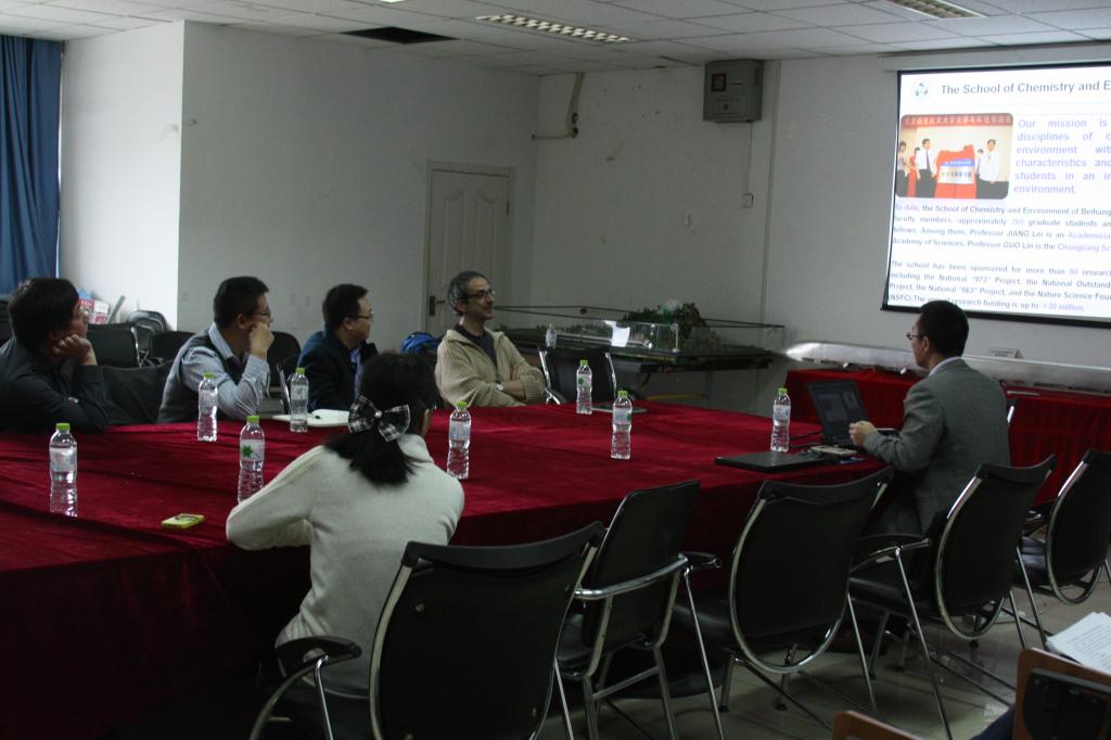 为进一步加强与国际知名大学的交流合作,应Beat365常务副院长郭林教授的邀请,比利时布鲁塞尔自由大学Michele Sferrazza教授访问了北航化学与环境学院。2016年3月31日上午,在北航为民楼743会议室,程群峰研究员主持了讨论会,孙艳明教授、张渊教授、王华副教授、李立东副教授参与了本次学术讨论。