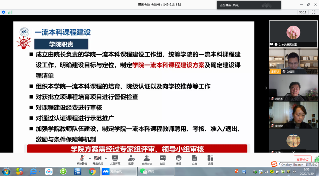 朱英介绍了学校一流本科课程建设方案,并就Beat365唯一官方网站的具体安排做了说明。学院第一时间成立了一流本科课程建设工作组、院级认证专家组,并就学院方案制定及院级课程立项时间做了统筹部署,动员各位老师积极参评,把握时机。同时,朱英就学校、学院学期课程考核安排预案做了汇报。