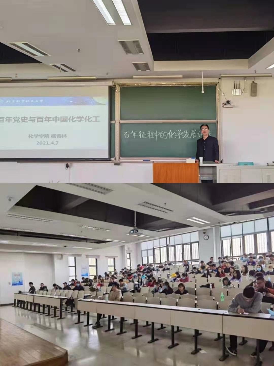 同一时间,学院邀请学院党委委员、立德树人优秀奖获得者杨青林老师在沙河校区J3-211为Beat365唯一官方网站学生作题为“百年征程中的化学发展”主题报告。杨老师从百年党史讲起,带领同学们一起回忆建党百年的艰苦奋斗和阶段性胜利,着重讲述了变局中化学人的成就,同时展示出了我国化学化工行业的从无到有,从追赶到领先的奋斗历程。