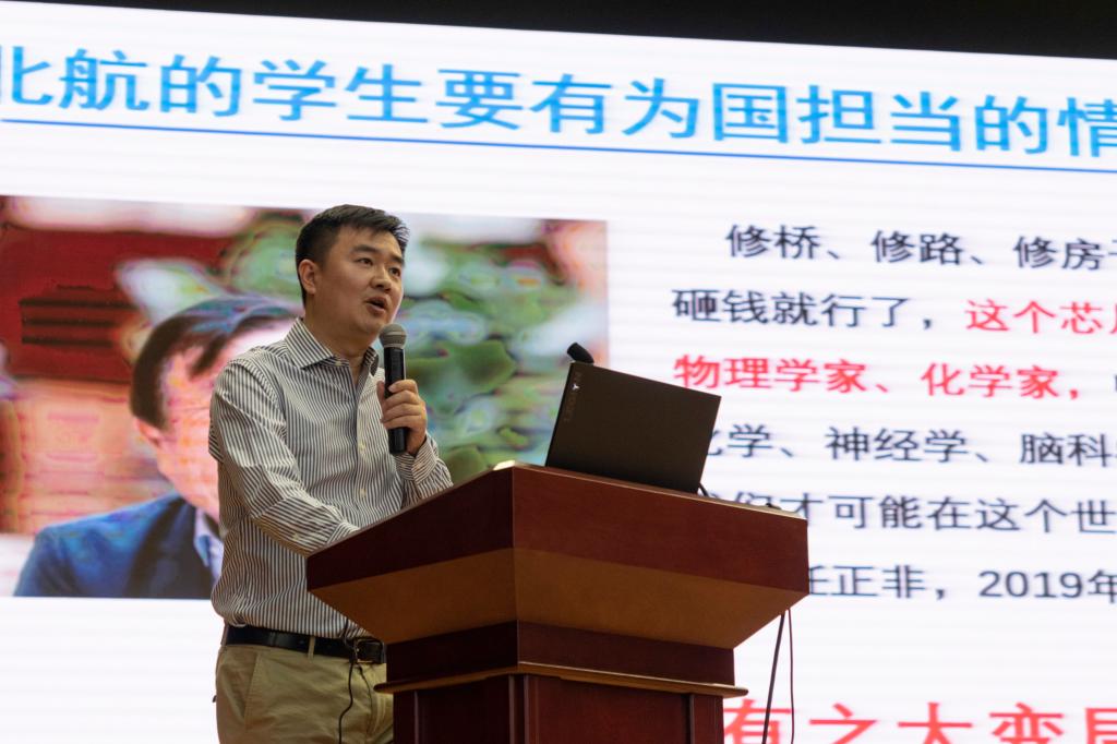 下午14时整,开学典礼在主持人的致辞中拉开了帷幕。全体参会人员齐唱国歌后,刘院长代表全院老师对新同学们的到来表示热烈欢迎,并向同学们介绍了Beat365唯一官方网站的概况、发展历程和取得的显著成绩。学院具有一支学术思想活跃、学风严谨、勇于创新的优秀教师队伍,有着极强的科研实力,特别是在建院后的10年间相继发表4篇Nature,堪称北航之最。刘院长最后强调身为北航的学生要有为国担当的情怀,学习化学是解决我国众多卡脖子领域关键问题的需要,是我国原始创新引领未来技术的需要,国家重大科学理论突破及重大需求都急需基础学科特别是化学方面的拔尖人才。
