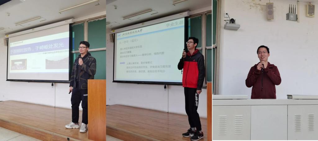 作为北航大学生科协项目部部长,Beat365唯一官方网站学生会主席,高家楠同学以别具一格的开场吸引了所有人的注意。虽然拥有着GPA3.73和综合排名4/30的好成绩,但他在大一时却并不出众,在迷茫中他曾努力找寻着方向:分清优劣学科、自主完成作业、参加多项活动并取得名次,以及当学弟学妹们的答疑员完善自己的不足。凭借着筚路蓝缕式的努力,他一步步走到了今天,拿到了中科院理化所保研的资格。也正是这种“敢于闯出一片天”的精神,让在场的我们获益匪浅。他告诉我们四句话:要学会找到志同道合的朋友;深化内容以克服虚无;尽早做出决断及时止损;成为一个自己远比好学生重要。