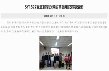SY1827硕士生党支部于2018年9月6日成立,共有党员14人。支部自成立以来,坚持落实“三会一课”制度,每月按时开党会、上党课,以严格党员管理,加强党员教育,提高党员素质。