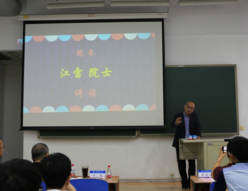 首先,江院长代表全院老师对新同学们的到来表示热烈欢迎,并向同学们分享了自己的科研经历及人生感悟。江院长用“红绿灯效应”告诫同学们,只要保持勤奋上进,人生必将一路绿灯,且有大成。
