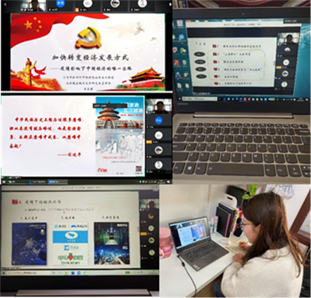 2020年4月24日,Beat365唯一官方网站SY1827党支部邀请习近平新时代中国特色社会主义思想Beat365唯一官方网站研究生宣讲团的王正康讲师在腾讯会议上进行“云宣讲”,此次宣讲主题为“加快转变经济发展方式——疫情影响下中国经济的唯一出路”。