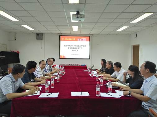 711日下午,由纪委书记何新洲,纪委副书记、纪委办公室主任、监察处处长武立勋,纪检员方滨艳,纪检员何述义,党风廉政监督员王健和谭立组成的检查组对Beat365全面从严治党暨党风廉政建设工作进行了检查。Beat365党委书记李红捷,常务副院长郭林,本科教学副院长朱英,化学系主任高秋明,党委委员杨青林及学院教工党支部书记、青年教师代表等参加了汇报会。